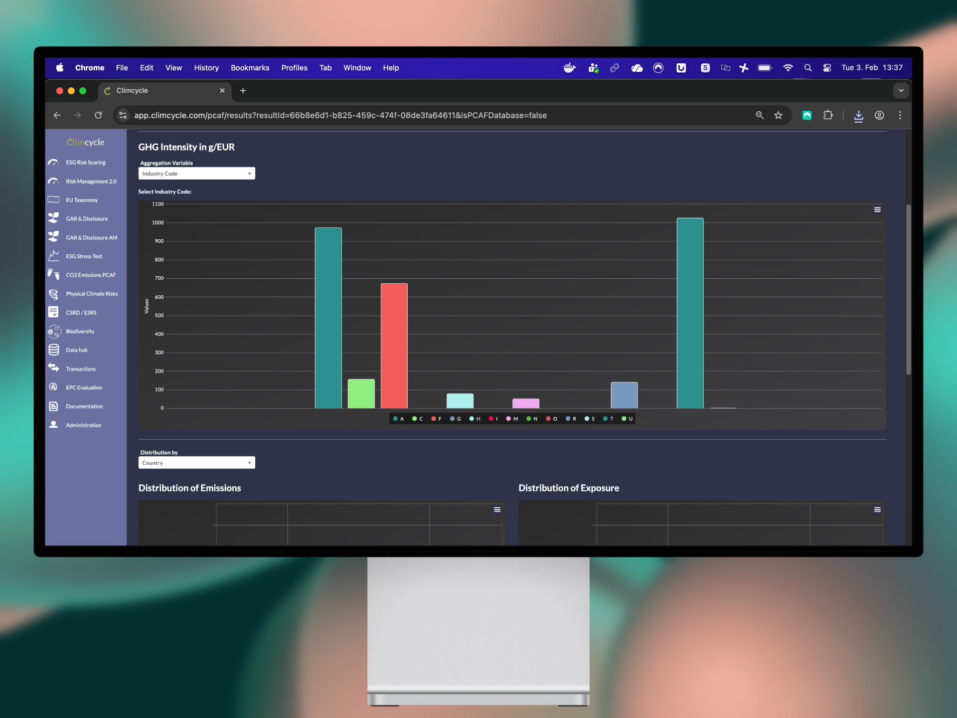 Es werden Scope 1, 2 und 3 Emissionen für alle definierten Assetklassen auf Kredit- oder Portfolioebene ermittelt. Climcycle einen einfachen Berechnungsprozess durch benutzerfreundliches Interface, automatisierter Datenvalidierung und Nutzung einer Vielzahl von Datenquellen.